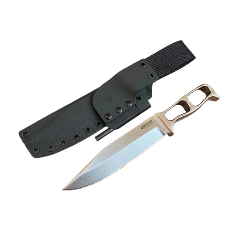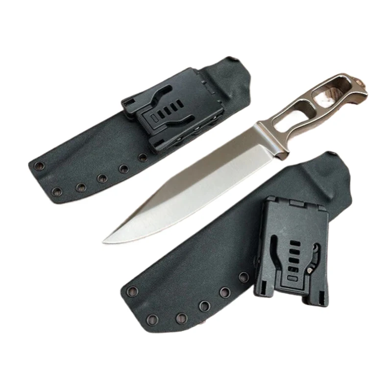 Bao da Kydex có sẵn trong khoen ở một bên và khoen ở cả hai bên. Velcro lý tưởng để gắn dao vào dây đeo ba lô. Ngoài vỏ Kydex, tôi có thể gắn giá đỡ bằng thép chống cháy, tùy ý bằng thép chịu lửa (dài 80 mm hoặc 100 mm).